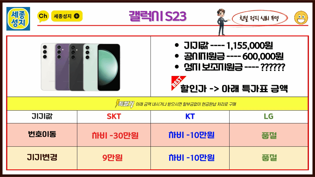 | 대전 휴대폰 성지 초특가 할인 갤럭시 S23 (8) | 2024.08.31 |